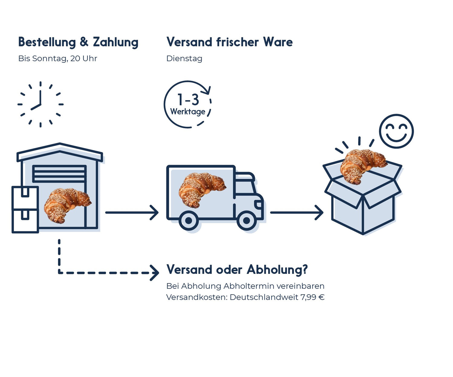 3. Wir backen für dich und versenden es bis spätestens Dienstag. Versand erfolgt mit DHL.